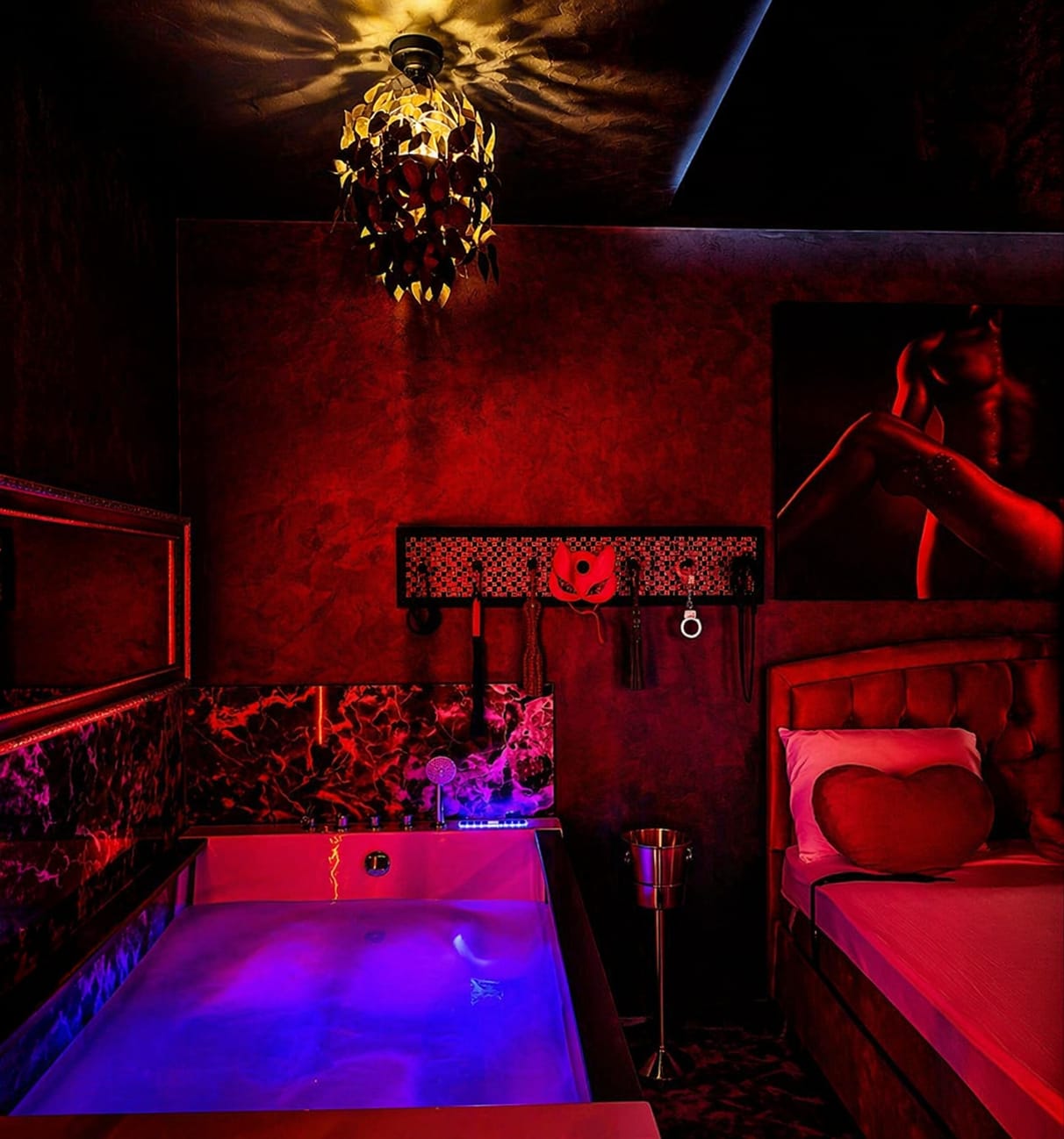 Camerele Love Room combină elementele clasice cu accente moderne, creând o atmosferă senzuală și provocatoare. Mobilierul din piele, oglinzile strategice și iluminarea ambientală ajustabilă contribuie la crearea unui spațiu perfect pentru explorare și intimitate. Decorul sofisticat este completat de accesorii tematice care adaugă un plus de mister și excitare.